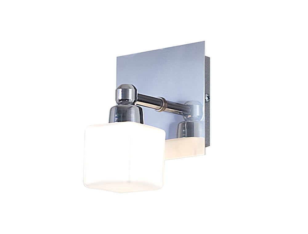 Аплик Amelia с 1 лампа.Подходяща за над огледало в баня или друго помещение. Огледален хром и инокс. Бели кубични стъкла._x000D_