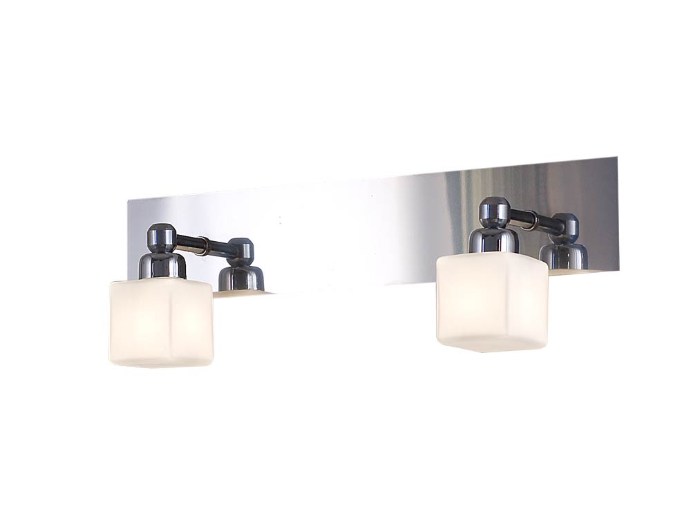 Аплик Amelia с 2 лампи.Подходящи за над огледало в баня или друго помещение. Огледален хром и инокс. Бели кубични стъкла._x000D_