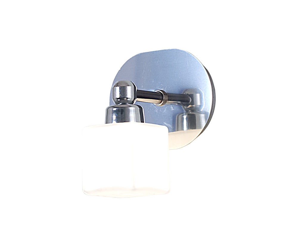 Аплик Amelia Oval с 1 лампa.Подходящи за над огледало в баня или друго помещение. Огледален хром и инокс. Бели кубични стъкла._x000D_