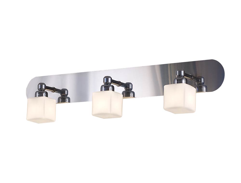 Аплик Amelia Oval с 3 лампи.Подходящи за над огледало в баня или друго помещение. Огледален хром и инокс. Бели кубични стъкла._x000D_