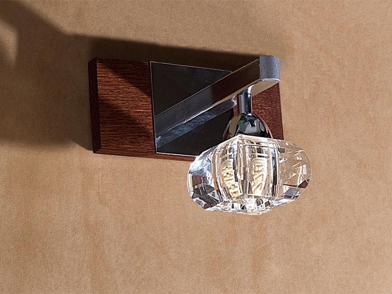 Аплик Caramel 01 с 1 лампи, кристал и модерен дизайн. Цвета на осветителното тяло е венге / череша и хром. Подходяща е за помещения с модерен интериор. Съчетание на дърво и кристал._x000D_
