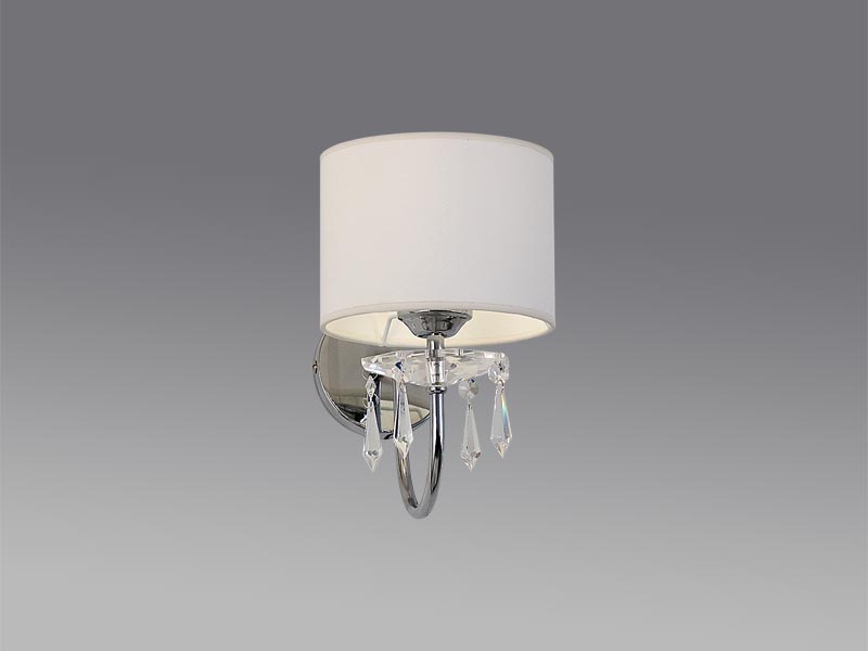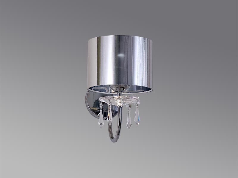 Аплик Eta с 01 лампa. Изящно осветително тяло с хромирани елементи, кристали и огледални или бели абажури.