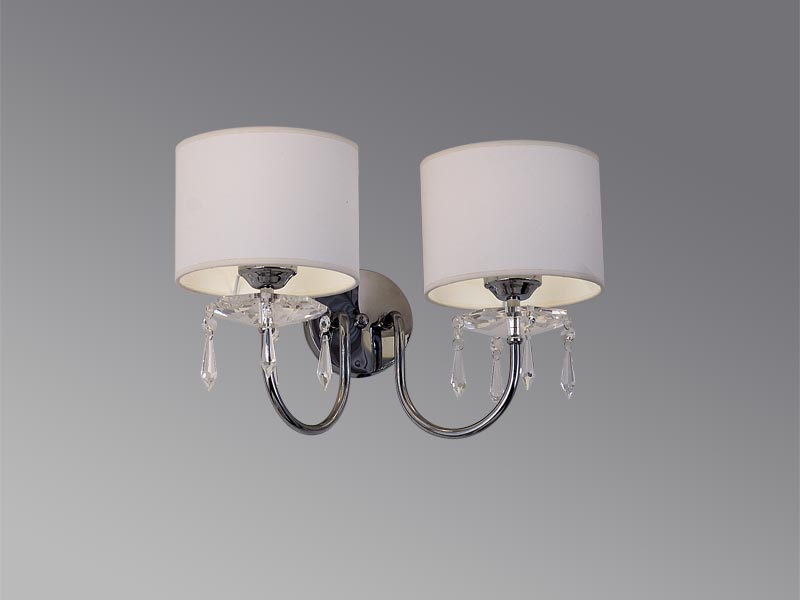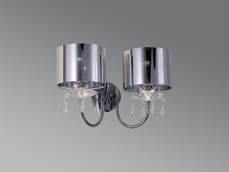 Аплик Eta с 02 лампи. Изящно осветително тяло с хромирани елементи, кристали и огледални или бели абажури.