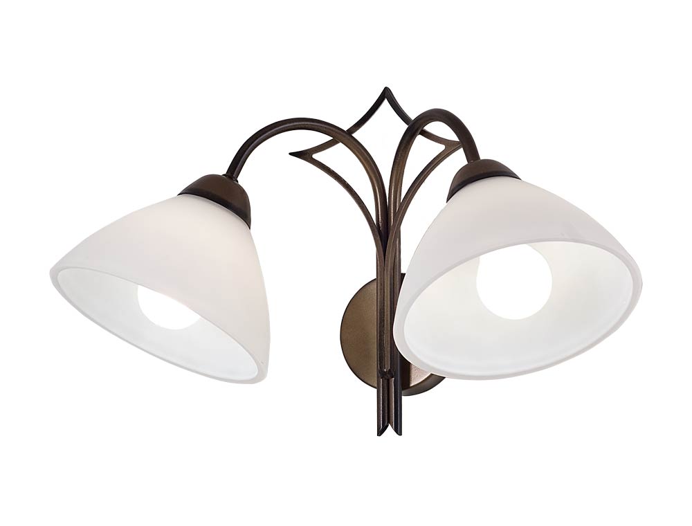 Аплик Faro с две лампи и стъклен абажур в бял цвят. Ретро и класически дизайн с орнаменти._x000D_