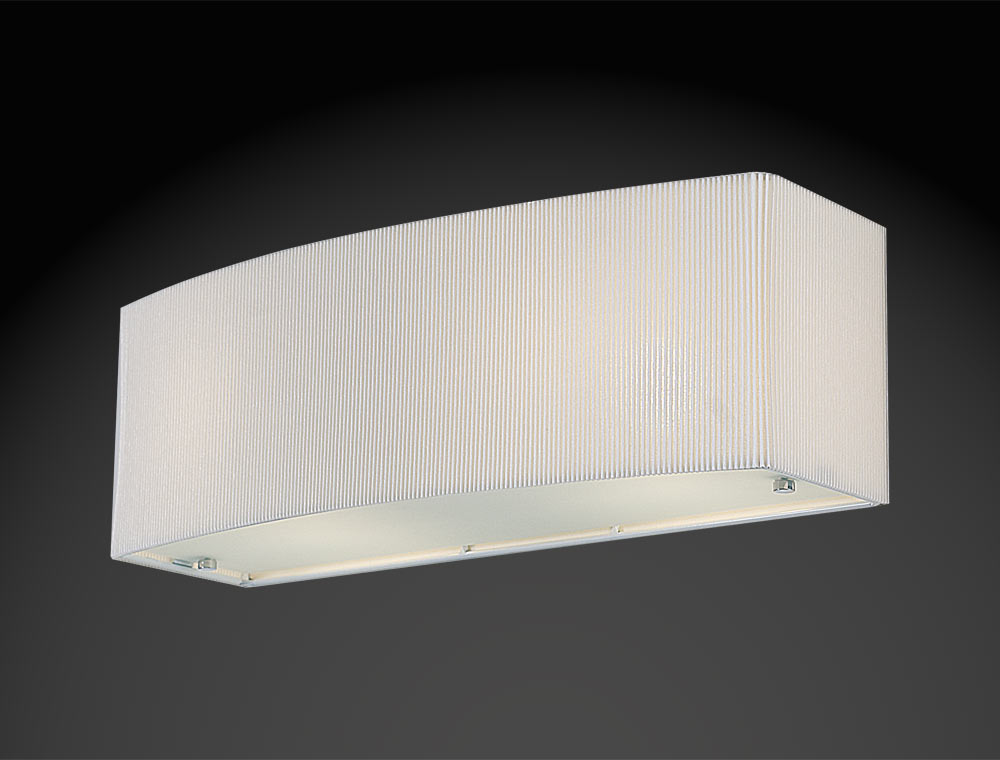 Аплик Place с 2 лампи. Хромирани декоративни елементи. Плисиран материал на абажура. Матирано стъкло. По поръчка се изработва в други неплисирани цветове. За информация относно възможните цветове се свържете с нас на посочения в сайта телефон или имейл._x000D_