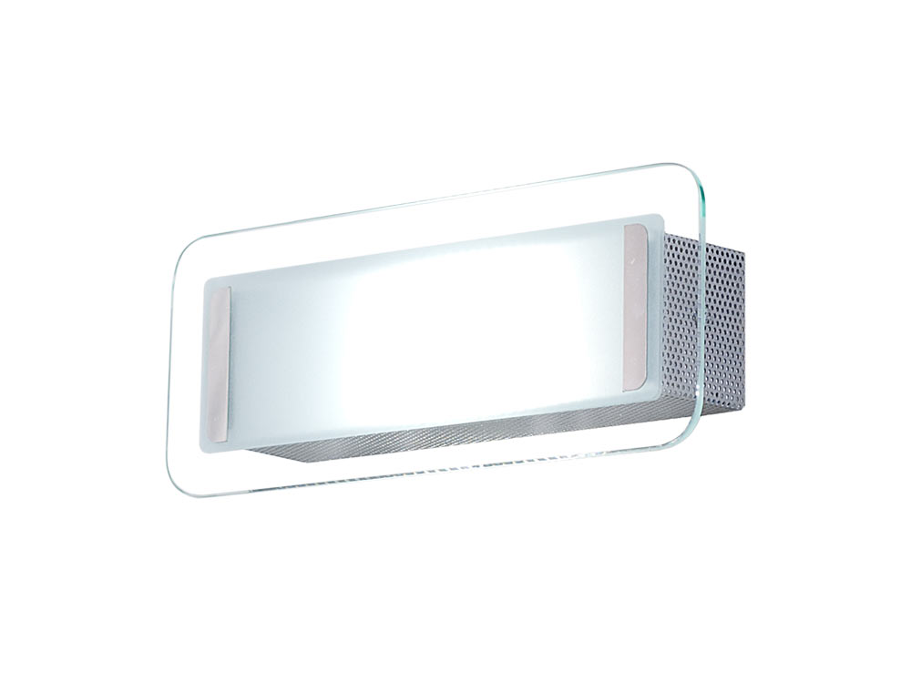 Аплик Sonia 01. Модерно осветително тяло с халогенна лампа. Матирано стъкло и огледални неръждаеми декоративни елементи