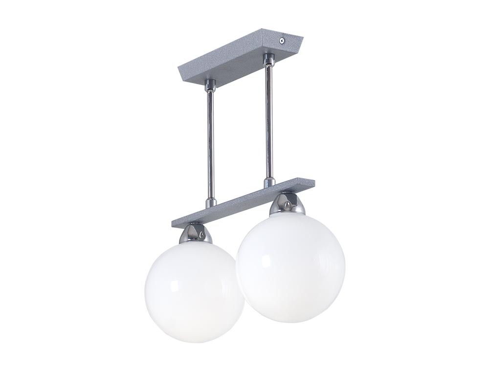 Късо таванно тяло Globo 02. Осветително тяло със снежно бели стъклени глобуси и хромирани елементи._x000D_