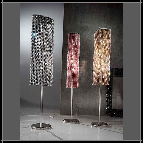 Лампион / стояща лампа / Kali с 8 лампи. Водопад от кристали в комбинации: кристал/черно, кристал/амбър (кехлибар), кристал/червено. Арматурата е в огледален хром. Срока на доставка зависи от наличностите на цветни кристали. Осветителното тяло е невероятно допълнение към всеки интериор, създаващо усещане за стил и лукс. Три различни форми – кръг, квадрат и овал._x000D_