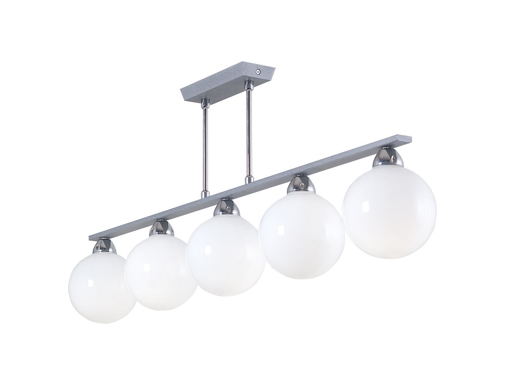 Полилей Globo 05. Осветително тяло със снежно бели стъклени глобуси и хромирани елементи._x000D_