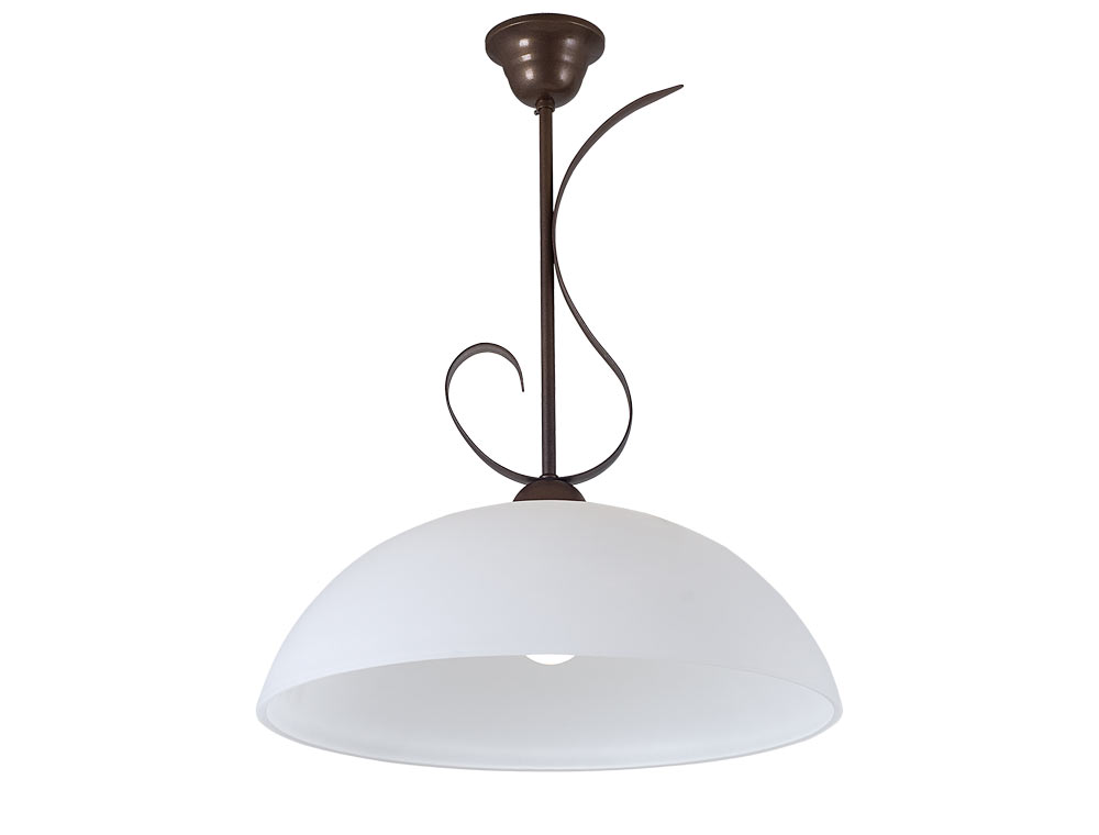 Класически пендел Kento с една лампа и стъклен абажур в бял цвят. Ретро и класически дизайн с орнаменти._x000D_