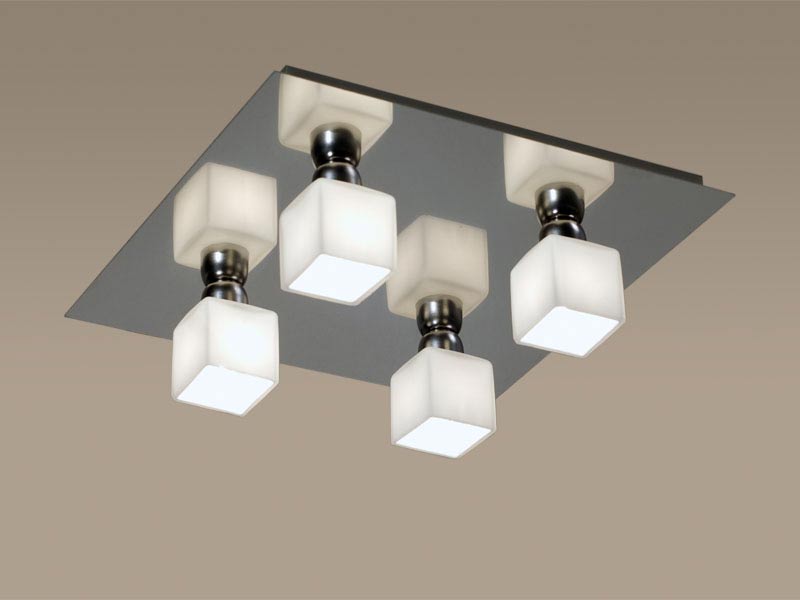 Плафониера Astro Cube R с 4 лампи. Комбинация от огледален инокс и бяло стъкло._x000D_