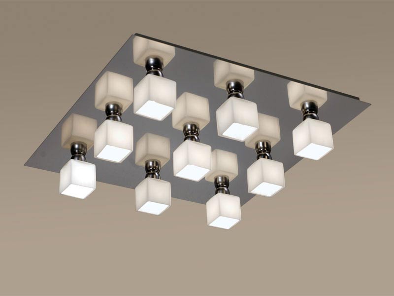 Плафониера Astro Cube R с 9 лампи. Комбинация от огледален инокс и бяло стъкло._x000D_