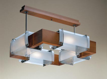 Плафониера Madrid с четири лампи. Изработена от дърво и инокс. Матирани стъкла. Модерен дизайн. Подходяща за стилен интериор. Възможен цвят на дървото – венге, череша, дъб. Вариант лампи – халогенна 60W-150W или енергоспестяваща 15-25W. Възможно телескопично рамо – височина до 80 см.