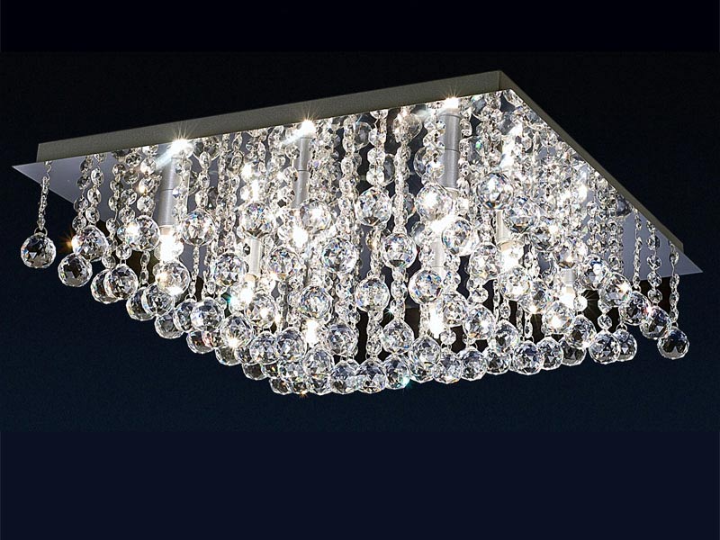 Плафониера Mido 08 Crystal inox с 8 лампи, кристал и модерен дизайн. Съчетание от кристал и огледален инокс. Подходяща е за помещения с модерен интериор._x000D_