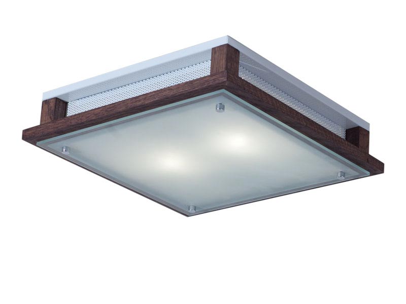 Плафониера Mood с две енергоспестяващи крушки. Модерен квадратен дизайн и декоративнa рамка от дърво в цвят венге. Подходяща за помещения с ниски тавани. Лампите не са включени в комплекта._x000D_