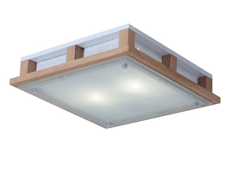 Плафониера Mood с две енергоспестяващи крушки. Модерен квадратен дизайн и декоративнa рамка от дърво в цвят венге. Подходяща за помещения с ниски тавани. Лампите не са включени в комплекта._x000D_