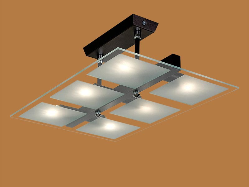Плафониера Sky 06, изработена от метал и стъкло. Матирани орнаменти на стъклото. Халогенни крушки 60W. Подходящи за помещения с модерен дизайн._x000D_