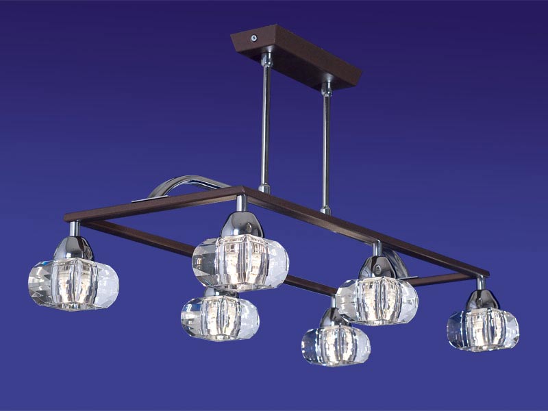 Плафониера SpartaR 06 с 6 лампи, кристал и модерен дизайн. Цвета на осветителното тяло е венге и хром. Подходяща е за помещения с модерен интериор. Съчетанието на огледални повърхности и прозрачен кристал създава усещане за стил._x000D_