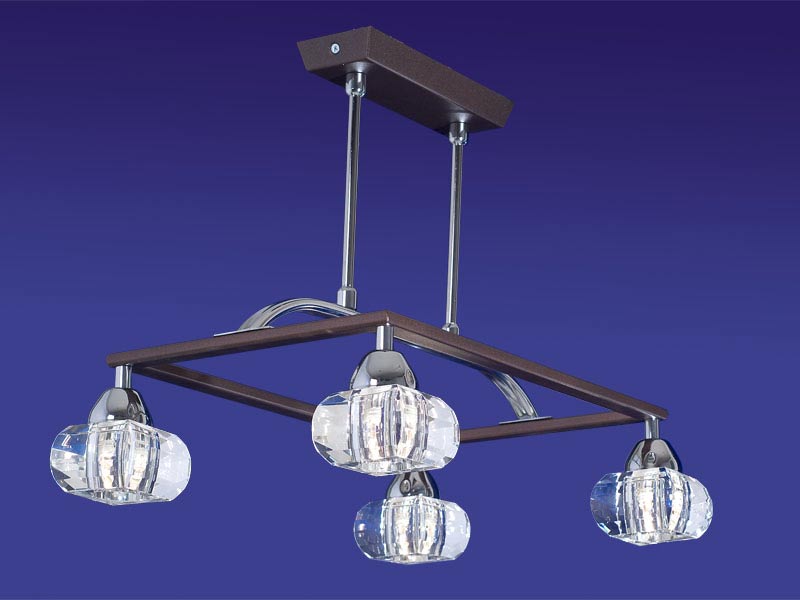 Плафониера SpartaR 04 с 4 лампи, кристал и модерен дизайн. Цвета на осветителното тяло е венге и хром. Подходяща е за помещения с модерен интериор. Съчетанието на огледални повърхности и прозрачен кристал създава усещане за стил._x000D_