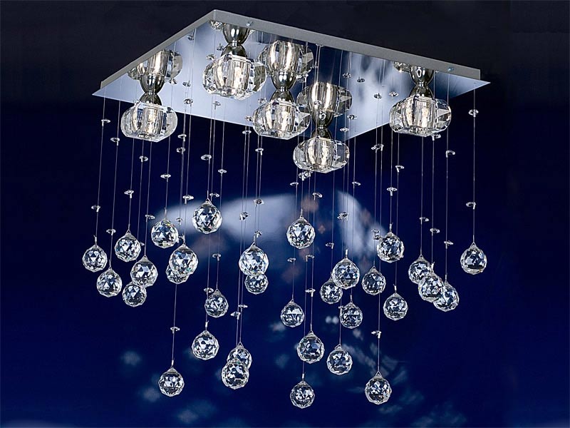 Плафониера Tea 05 Crystal inox с пет лампи, кристал и модерен дизайн. Съчетание от кристал и огледален инокс. Подходяща е за помещения с модерен интериор._x000D_