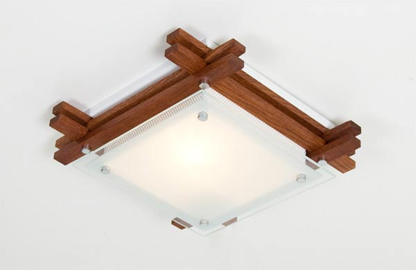Плафониера Wood с една енергоспестяваща крушка. Модерен квадратен дизайн и декоративни елементи от дърво в цвят череша. Подходяща за помещения с ниски тавани. Лампите не са включени в комплекта._x000D_