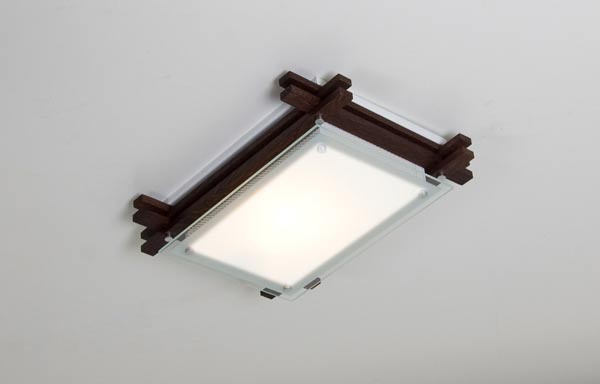 Плафониера Wood с една енергоспестяваща крушка. Модерен правоъгълен дизайн и декоративни елементи от дърво в цвят венге. Подходяща за помещения с ниски тавани. Лампите не са включени в комплекта._x000D_