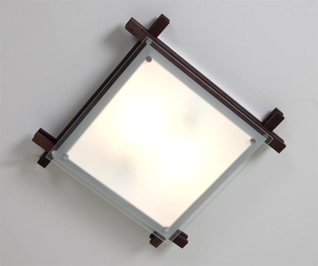 Плафониера Wood с две енергоспестяващи крушки. Модерен квадратен дизайн и декоративни елементи от дърво в цвят венге. Подходяща за помещения с ниски тавани. Лампите не са включени в комплекта._x000D_