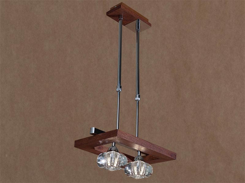 Полилей Caramel 02 с 2 лампи, кристал и модерен дизайн. Цвета на осветителното тяло е венге / череша и хром. Подходяща е за помещения с модерен интериор. Съчетание на дърво и кристал. На снимката е показан вариант с телескопично рамо, но може да бъде и с късо рамо._x000D_