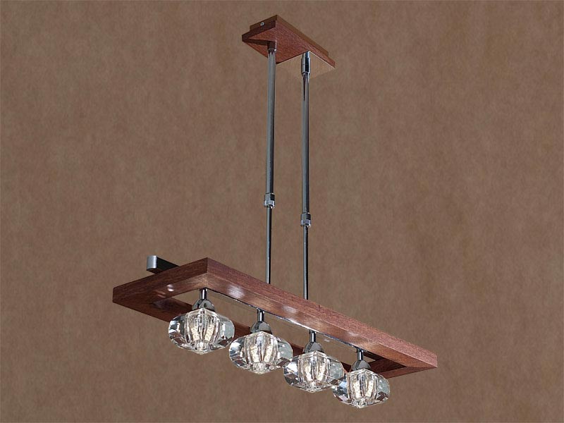 Полилей Caramel 04 с 4 лампи, кристал и модерен дизайн. Цвета на осветителното тяло е венге / череша и хром. Подходяща е за помещения с модерен интериор. Съчетание на дърво и кристал. На снимката е показан вариант с телескопично рамо, но може да бъде и с късо рамо._x000D_