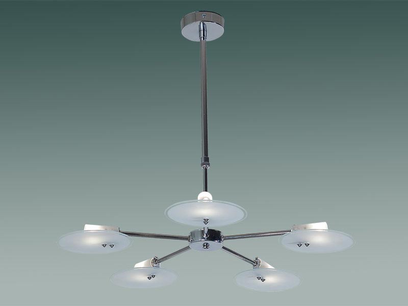 Полилей Crop с 05 лампи. Комбинация от метал и стъкло. Огледален хром и съклени дискове. Подходящ за модерен интериор._x000D_