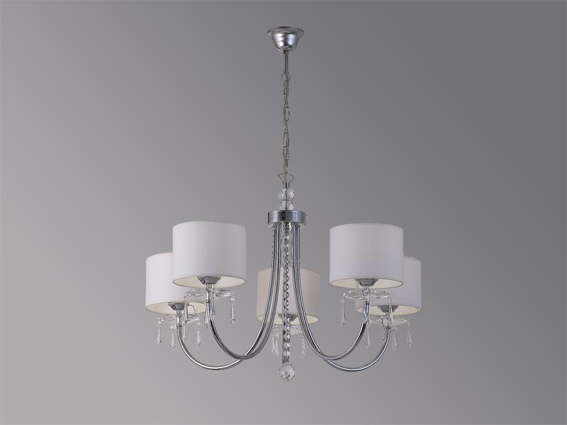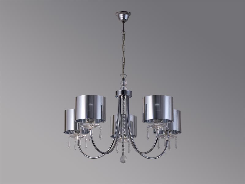 Полилей Eta с 05 лампи. Изящно осветително тяло с хромирани елементи, кристали и огледални или бели абажури.