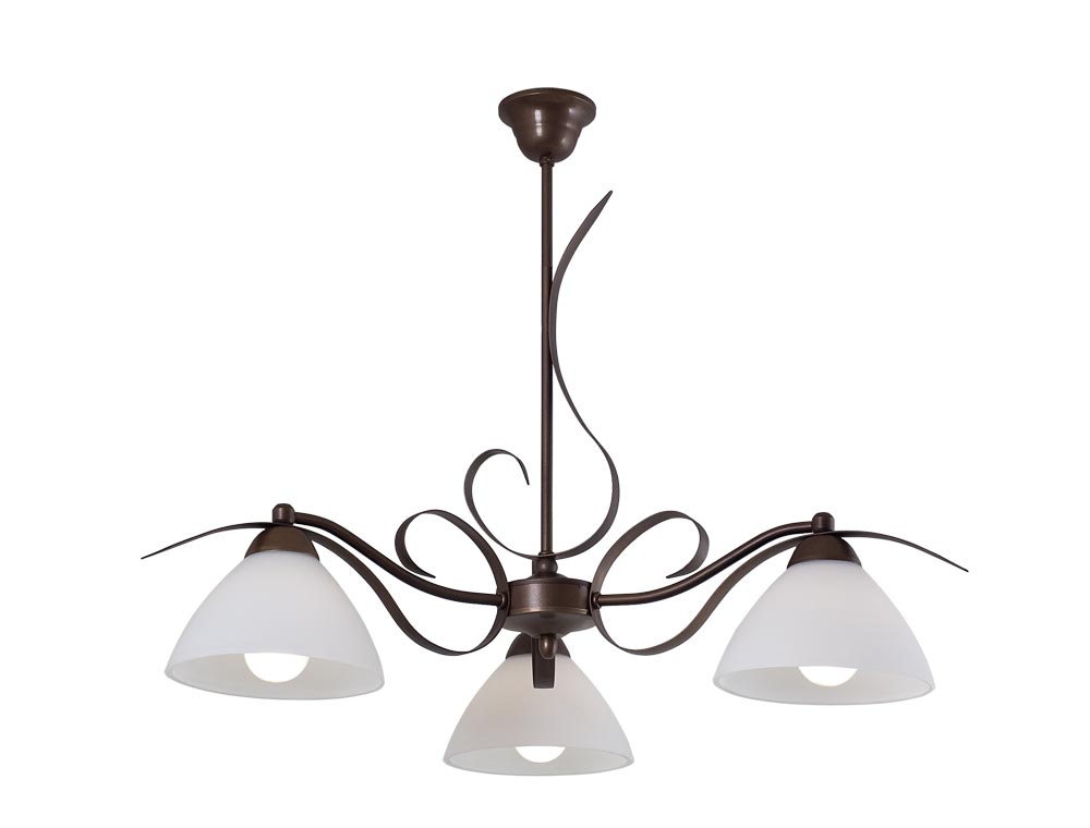 Класически полилей Kento с три лампи и стъклени абажури в бял цвят. Ретро и класически дизайн с орнаменти. Подходящ за малки всекидневни, холове и спални._x000D_