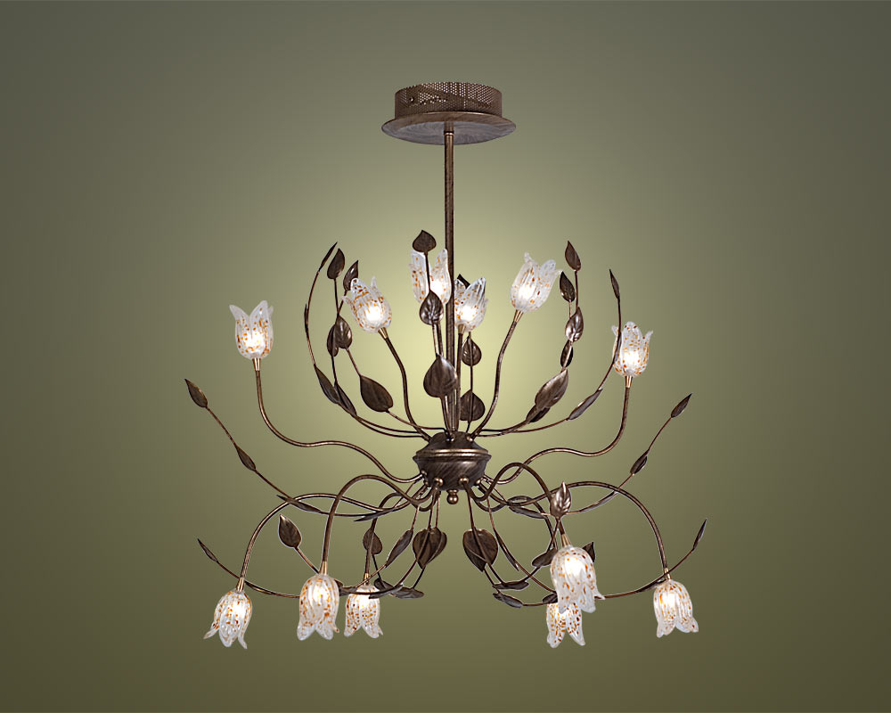 Полилей във формата на спускащо се от тавана дърво. Малки стъклени абажури. Халогенни капсули 12V 10W. Възможен вариант с различна височина от посочената._x000D_