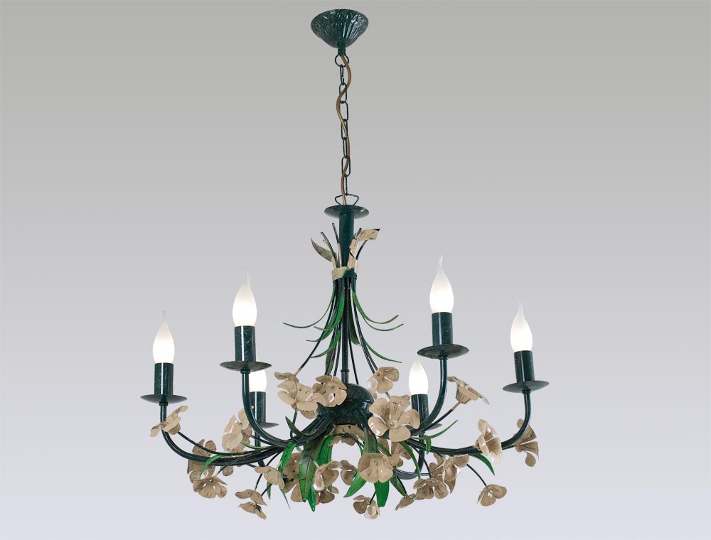 Полилей Lotus с 6 лампи. Комбинация от флорални елементи и класически стил._x000D_