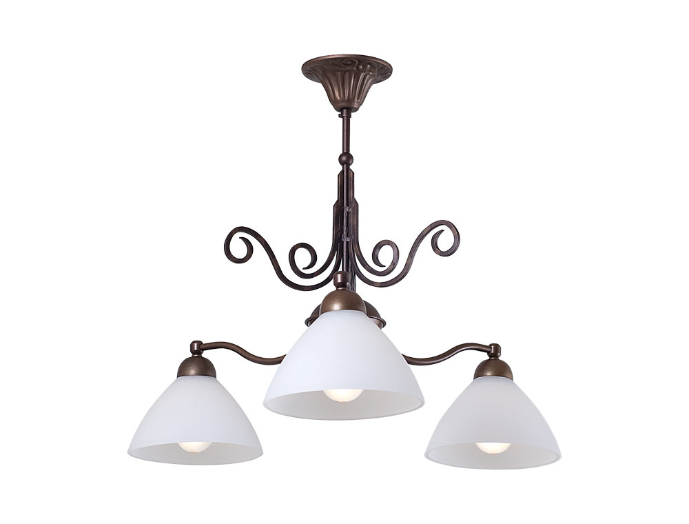 Полилей Lula с три лампи. Бели стъклени абажури и класически метални орнаменти. Подходящ за всекидневна, хол, спалня или друго помещение._x000D_
