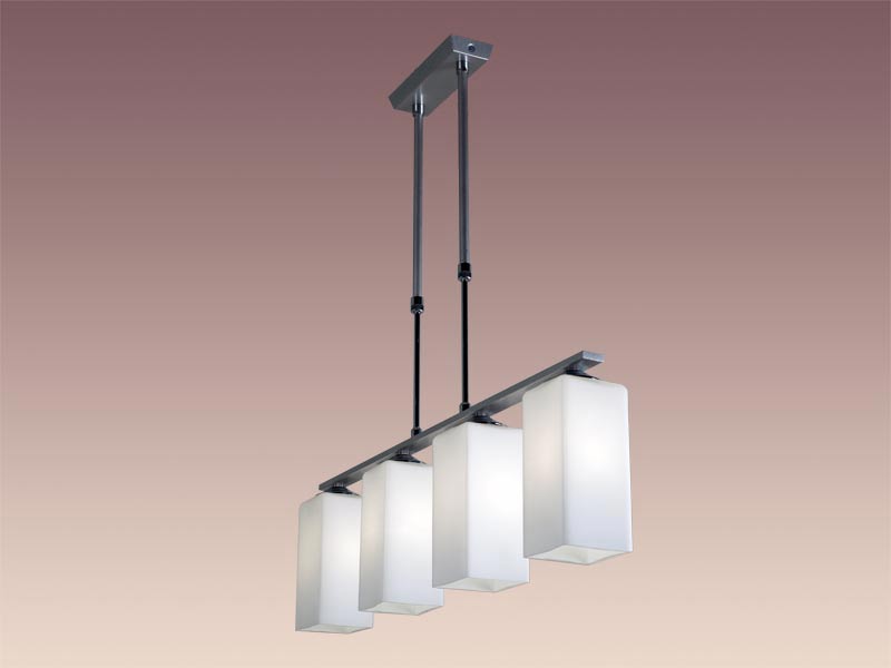 Полилей Marta с четири лампи. Комбинация от метал и стъкло опал с призматична форма. Подходящо за модерен интериор.Възможен е вариант в тъмно кафяв цвят цвят или с късо вместо телескопично рамо. Моля, вижте останалите снимки в серия Marta Cube, за да видите цветовете и размерите. За повече информация се свържете на посочения за връзка имейл. Лампите не са включени в цената._x000D_