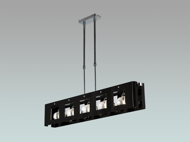 Полилей Paris Black 05. Модерно осветително тяло с огледален черен плексиглас и хромирани елементи. Релефни кристали с халогенни лампи.