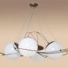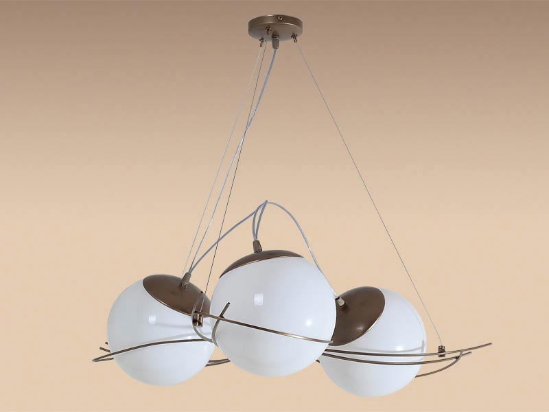 Полилей с три стъклени глобуса и висящо окачване. Интересен и авангарден дизайн. Предлага се в два цвята – кафяво-бронз и сребристо-беж – погледнете другите модели в същата серия, за да видите цветовете. Лампите не са включени в цената._x000D_