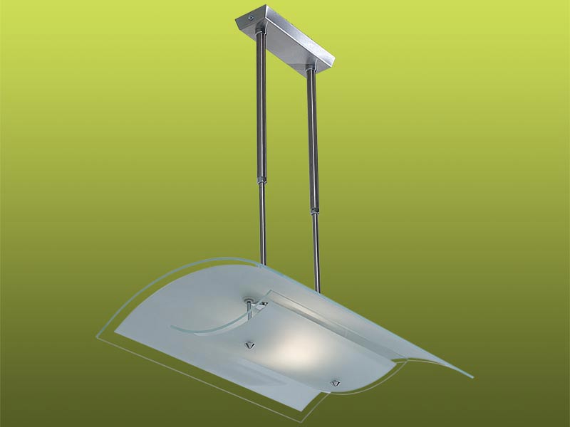 Стилен модерен полилей с една халогенна лампа 150W. Изработен от инокс и с матирани стъкла, за оптимално разсейване на светлината. Телескопични рамена за промяна на височината на осветителното тяло._x000D_