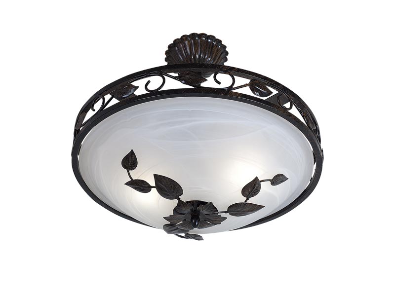 Полу-плафониера Venice 02.Класическо осветително тяло с флорален мотив, бяло алабастрово стъкло.Предлага се в два цвята.Лампите не са включени в цената._x000D_